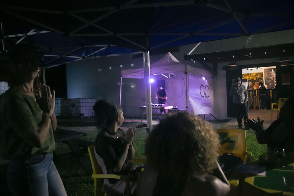 Une rencontre pleine de surprises et de puissance cosmique pour le public du Bisik qui s’était déplacé en nombre, une fois de plus hier soir, pour cadencer sur les créations d’inspiration maloya électro de nos artistes authentiques et de leurs créations inimitables. Expérience à vivre et à partager !
