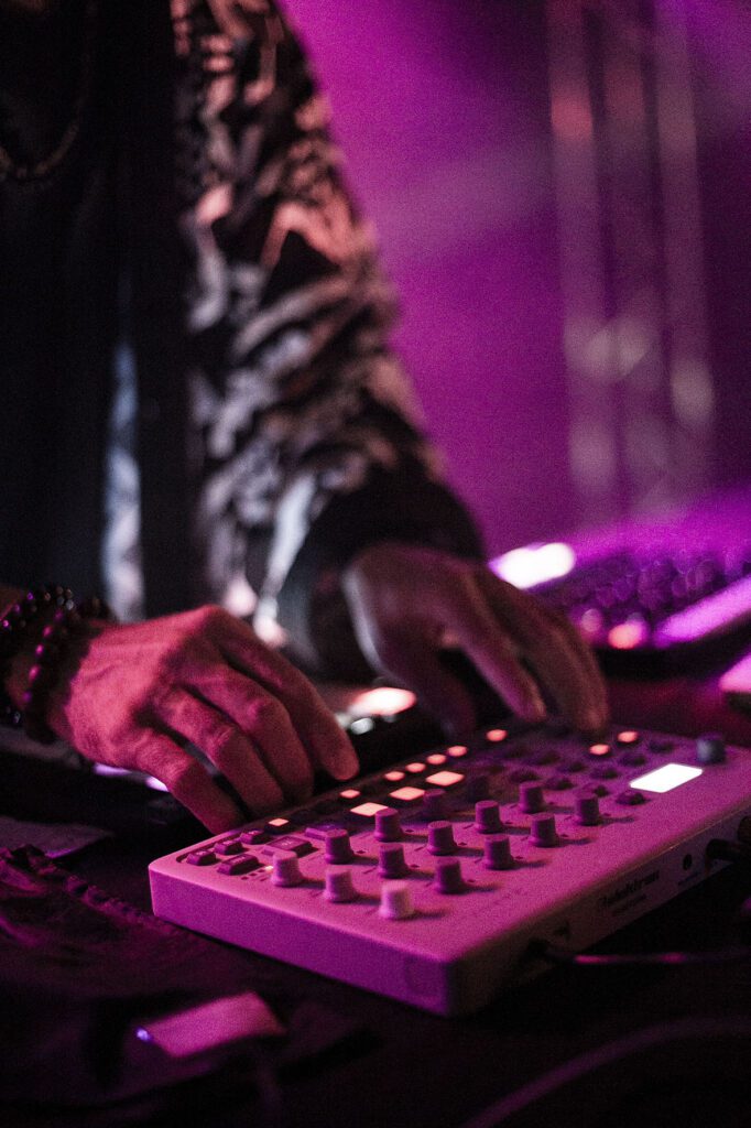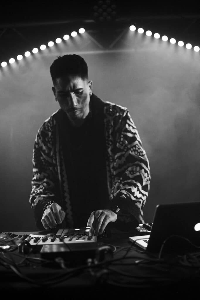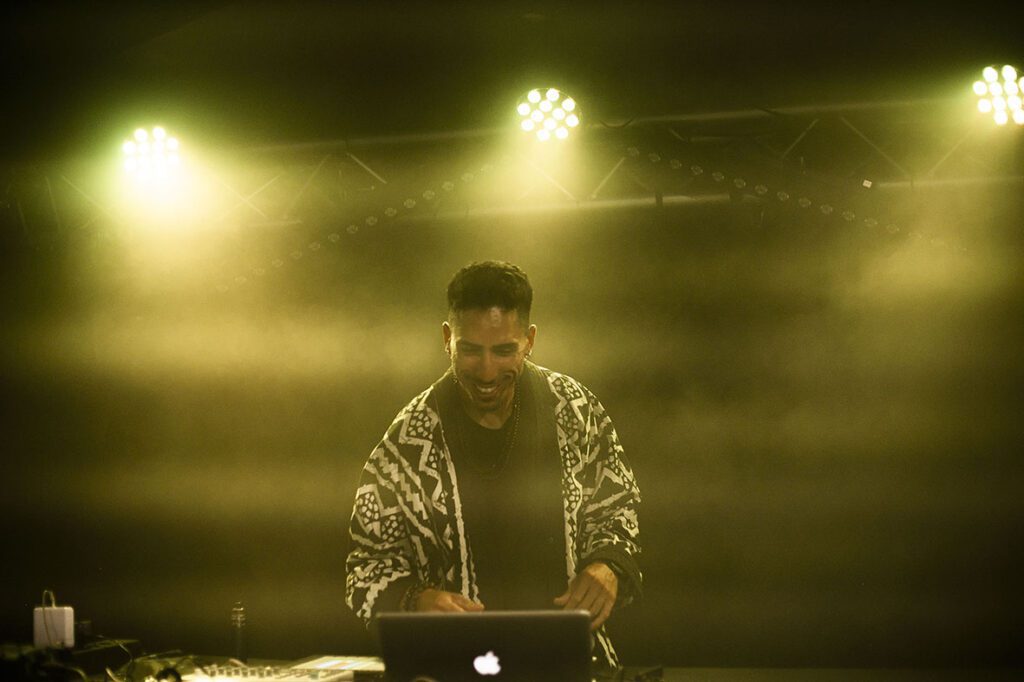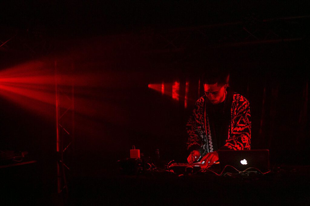 Sur la scène, dans une atmosphère nébuleuse, une chaleur mystique commence à monter quand Aleksand Saya commence à s’emparer des machines et de son bobre électrisant. Aleksand enchaîne les loops en live, du kayamb aux percussions bien dosées puis nous attire dans son “Sayaverse” utopique avec son titre “Amèn Amwin” et sa voix transcendante. Une douceur musicale fusionnant chant maloya et musique électrique, Aleksand Saya nous partage sa pilule verte, nous rappelle de créer, conscients de nos choix et de notre pouvoir de décision. Avec “Kado la” finement ficelé, Aleksand ajoute un soupçon d’amapiano à son maloya fusion. Il nous a partagé ce présent en exclusivité dans la vouve du Bisik. Le public se laisse alors porter par les battements de roulèr, de sati, de piano harmonisé et de tambour malbar.