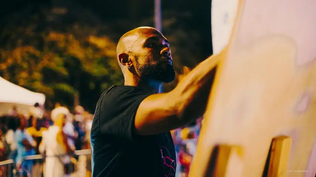 Arno Bazin, Henry Legras, Daniel Lesfrith et Yohan Calciné, accompagnés de Bernadette et Patricia Philippe (Solah) mais aussi de Jean-Pierre Denain, Gaby Laï-Kun, Bertrand et Mathias Nardy, Nadège Mansard, Aïna Chariter, Willy Técher (Babou), et Marcel Philéas ont parcouru le répertoire de cette grande dame du maloya, chacun retrouvant la richesse des ses compositions parfois oubliées, mais souvent reprises en chœur par le public, à l’image de « Déboulonné » avec Gaby Lai-Kune, « Si in jour » par Babou, deux compagnons de route de Tantine Zaza, « Mi aime voyagé » avec le duo Solah qui a toujours connu Françoise, ou « Laisse amoin aime aou » avec Mathias, un jeune de l’association Pomme d’Aco, qui célébrait ici sa première apparition sur scène. Pendant ce temps, on pouvait voir à côté de la scène, Bruno Cochard graffer le portrait de notre grande dame avec minutie et attention.