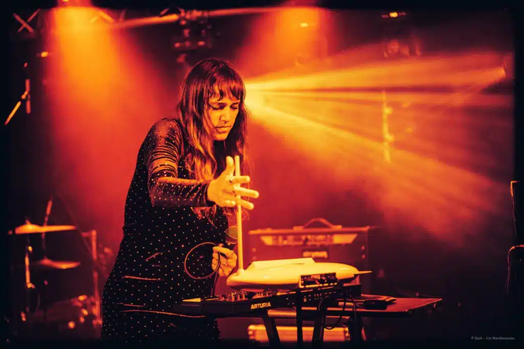 Tels une « Meteor »ite, la batterie de Nicolas Diem nous plonge dans une déferlante apaisée par la voix ensorcelante de Clara Vandierdonck qui surfe sur d’inquiétantes « Eather Waves » et sur les notes enlevées de la guitare polymorphe de Nicolas Dali et du clavier basse de Benjamin Rebolle. Les regards des quatre artistes ne trompent pas et nous dévoilent une grande connexion entre chacun d’entre eux. Le public ondule au rythme des vagues de sentiments qui frappent le bord de scène, la musique nous porte, elle nous entraîne ailleurs. Si Clara nous fait parfois penser physiquement à Juliette Armanet, c’est Portishead et sa mélancolie qui vient à l’esprit des spectateurs pour définir les compositions de la formation.