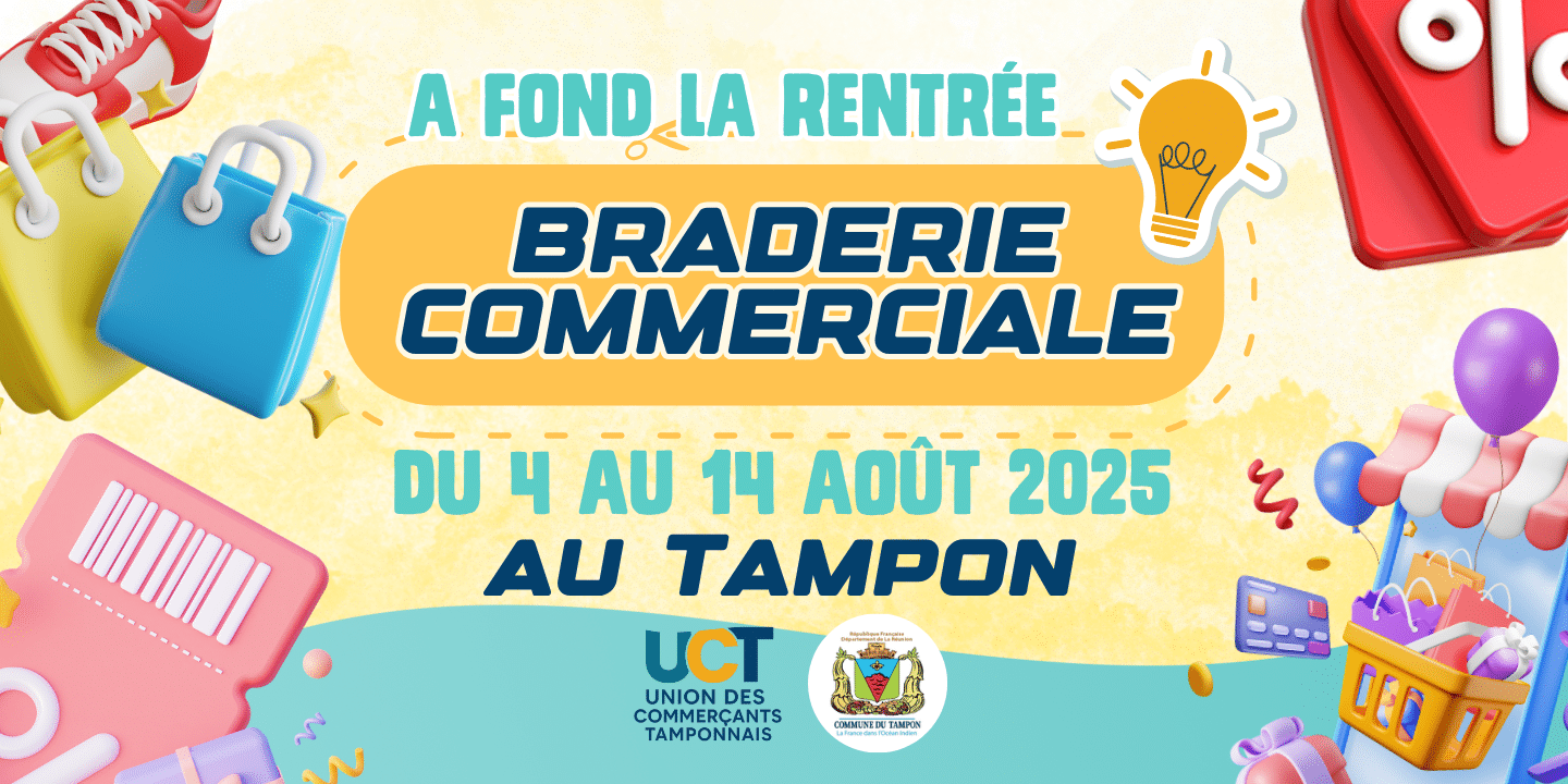 L’Union des commerçants du Tampon organise une grande braderie commerciale du lundi 4 août au jeudi 14 août le long de la rue Hubert Delisle, entre la rue Jules Bertaut et le rond-point Chandelle.