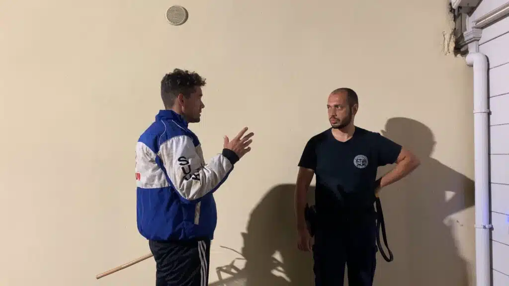 Dans ce chenil, tous les chiens sont des malinois. Souvent, ils sont sauvés par la SPA puis recrutés par le Centre national de formation des unités cynotechniques (CNFUC) de Cannes-Ecluse en Seine-et-Marne qui teste leurs aptitudes. « Ce sont des chiens qui sont souvent destinés à être piqués, la police leur offre une seconde chance. » nous explique Vincent, le brigadier-chef de l’unité canine du commissariat du Chaudron, seule unité canine de la police nationale à La Réunion. Ces chiens sont des armes létales, des sportifs de haut niveau qui nécessitent des entrainements réguliers. Ils ne sont ni castrés, ni sociabilisés afin de conserver tout leur instinct de prédation. Ce soir-là, c’est Paco qui est entraîné, la dernière recrue. Un entrainement haut en couleurs, « on va faire du théâtre » nous explique Jérémy, gardien de la paix et conducteur de Paco. Deux rôles : l’homme d’attaque et le conducteur. « La priorité c’est que le chien ne se blesse pas » affirme le brigadier-chef qui joue le rôle d’hommes d’attaque ce soir. « Tout ça peut paraître violent mais pour le chien, c’est du sport et cela permet qu’il soit efficace sur la voie publique. » Le chien est entraîné à taper avec la muselière mais aussi à mordre l’homme d’attaque.