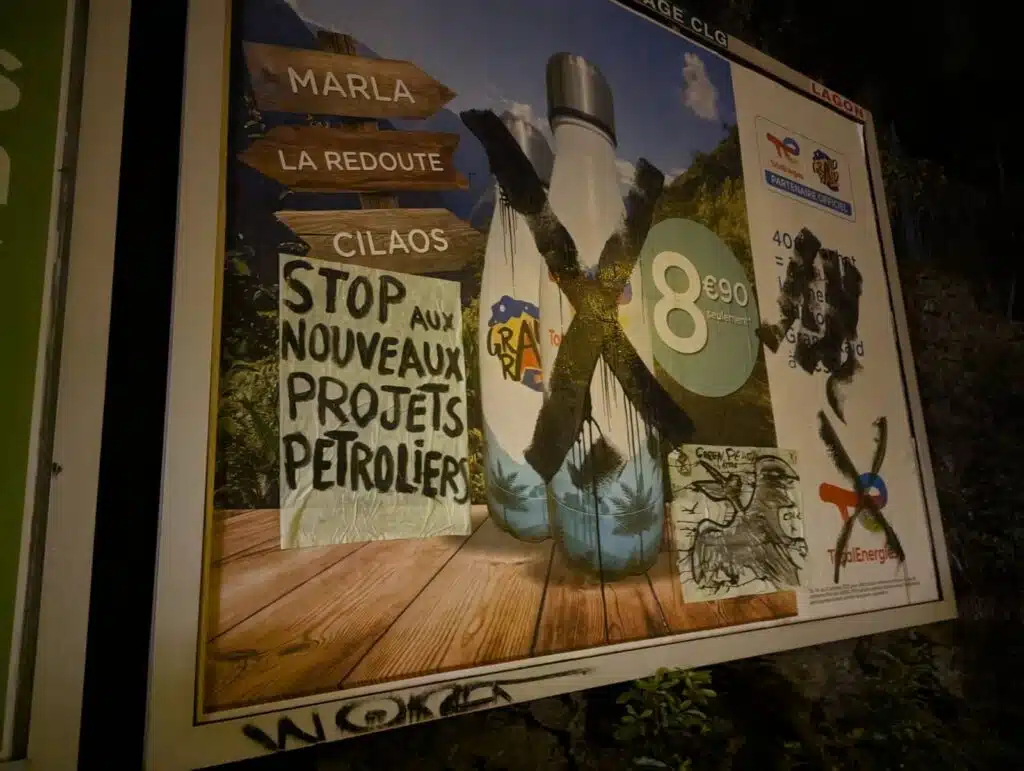 LIBRE EXPRESSION « Alors que la loi Climat et résilience interdit la promotion des énergies fossiles, Total profite de son partenariat avec le Grand Raid et l’absence de décret d’application pour s’afficher en 4×3 dans toute l’Île. » (Le Tangue 16 octobre 2023) 19 octobre 2023, grand matin, c’est à la peinture noire pétrole que des militants ont appliqué ce…