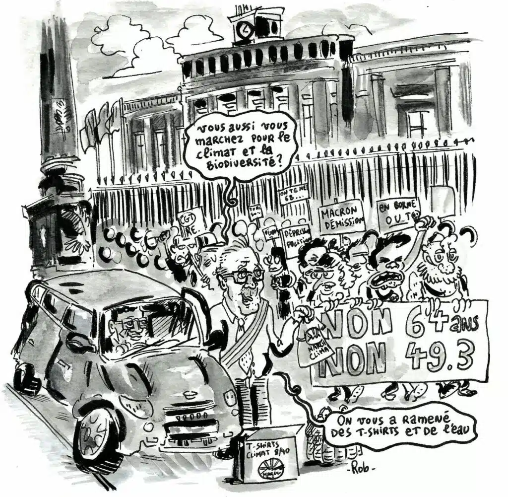 LIBRE EXPRESSION Rob est dessinateur et a publié dans divers titres indépendants depuis 2014, il nous a envoyé deux dessins réalisés à l’occasion de la marche sur le climat organisé par la Cinor… Pour suivre Rob, connectez vous à son compte Insta : https://www.instagram.com/rob_dessinateur/