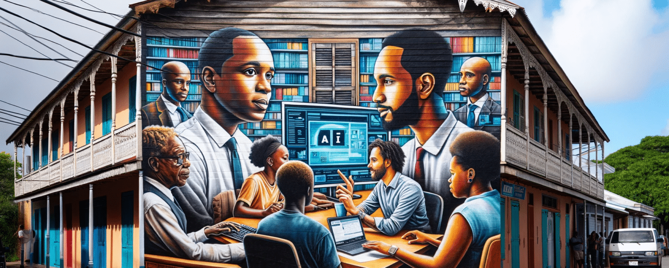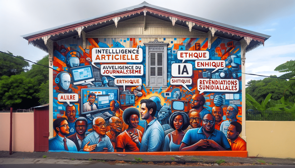 ChronIA, notre journaliste ChatGPT a réagi au communiqué du syndicat des journalistes publié la semaine dernière sur la place de l’intelligence artificielle dans les rédactions. Et comme elle n’a pas tout à fait la même déontologie que ses confrères humains, elle a réalisé une interview avec un interlocuteur fictif. Un certain Jean-Luc Moreau, elle a sans doute compris que c’était un nom d’ici. L’IA a donc rédigé les questions, elle s’est répondu à elle-même et a généré les illustrations. Petit bug à ce niveau là, il lui avait été demandé d’écrire des mots en français et en créole sur le mur …
