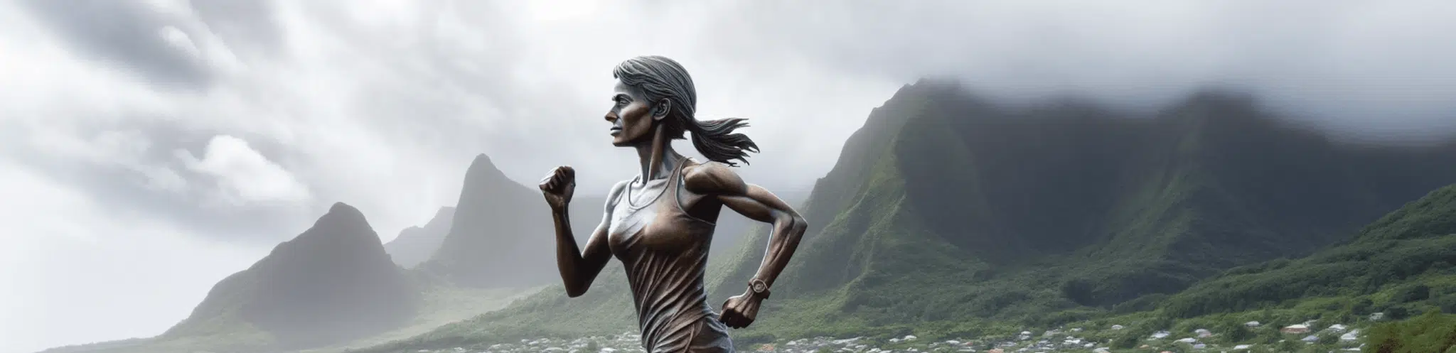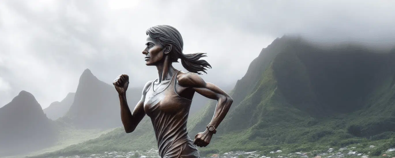 Voici l’image générée de la statue de Marcelle Puy, la célèbre coureuse d’ultra-trail de La Réunion.