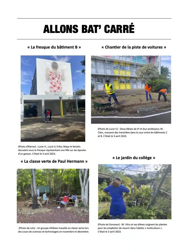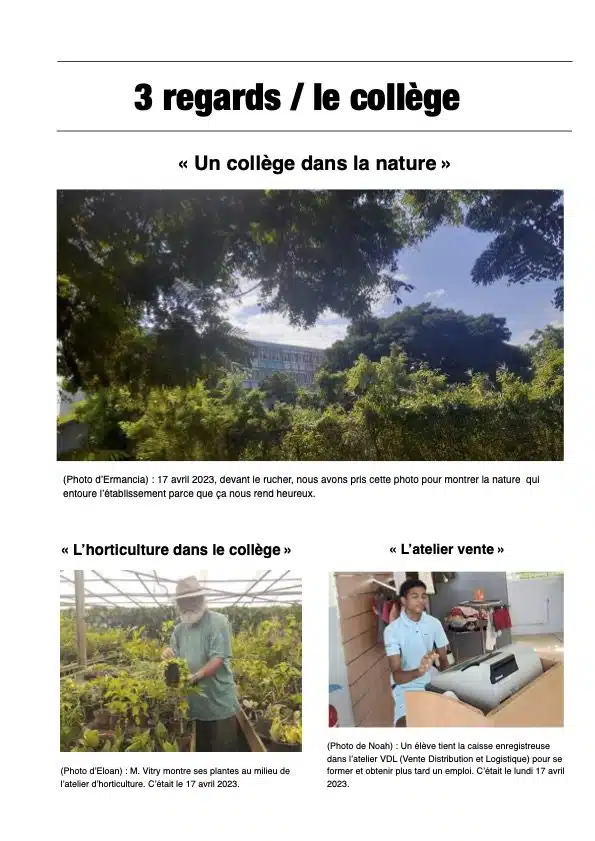 Pour mieux comprendre les différentes facettes du métier, ils sont passés a l’action par groupes de deux ou trois. Première mission : prendre leur collège en photos. Il fallait choisir un sujet et parfois aller à la pêche aux infos avec les professeurs des différents ateliers… Ce fut leur premier reportage.