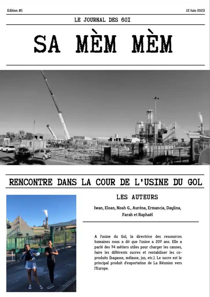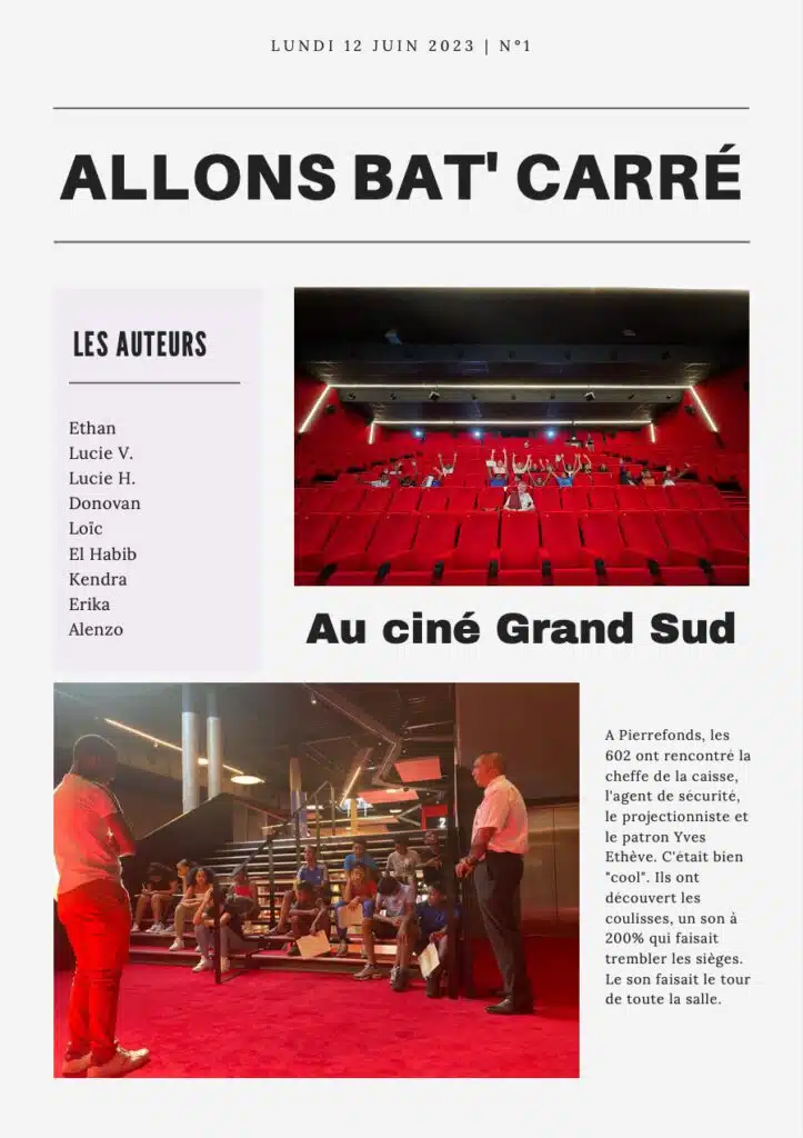 Pour la logistique, l’établissement a loué un bus et nous avons contacté le sucrier Téréos, un planteur de canne et les promoteurs du cinéma. Merci à eux qui ont été enthousiastes pour rencontrer les élèves : Amélie Plumasseau, la directrice des ressources humaines de l’usine du Gol, Bernard Maratchia, planteur syndicaliste élu régional délégué à l’agriculture et ancien élève du collège Paul-Hermann, Yves Ethève, le patron de Mauréfilm et toute son équipe. Le jour du reportage tous se sont confiés aux élèves sans langue de bois pour des échanges plus riches que la plupart des interviews qu’ils ont l’habitude de donner aux journalistes professionnels.