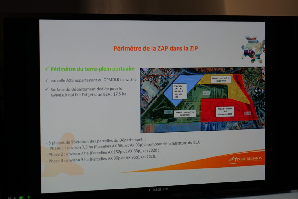 Un appel à manifestation d’intérêt devrait être lancé par le Grand Port Maritime de la Réunion, en 2026 pour sélectionner les opérateurs qui occuperont les premières parcelles de la ZIP.
