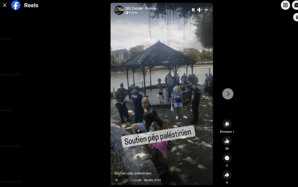 Le samedi 14 octobre, une vingtaine de personnes se sont réunies sous un kiosque, à Saint-Pierre, pour parler et montrer leur soutien au peuple palestinien. L’invitation avait été relayée deux jours plus tôt par la page FaceBook du QG Zazalé. Et interdite la veille par un arrêté préfectoral particulièrement choquant.