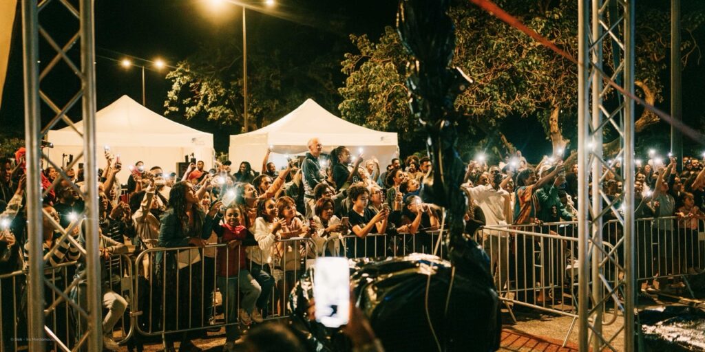 C’est le feu avec Pix-L. Les corps ondulent, les mains s’élèvent, les refrains sont repris en chœur. C’est la fête, la vraie, la belle, celle qui nous rassemble.