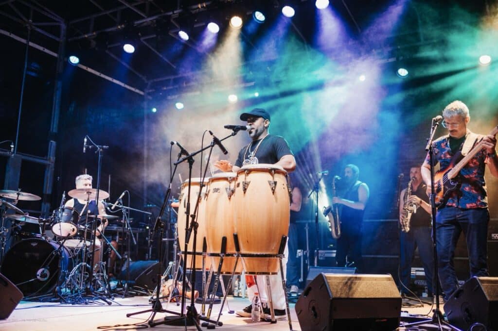 Derrière les congas et les guitares hypnotiques, cinq cuivres s’élancent puissants et éclatants. Leurs pas de danse synchronisés, dignes d’une parade urbaine, électrisent le public. On se regarde, on sourit, on danse. Les rythmes afro beats haïtiens résonnent avec une ferveur communicative. On ne pouvait rêver meilleure ouverture : solaire, généreuse, irrésistible.