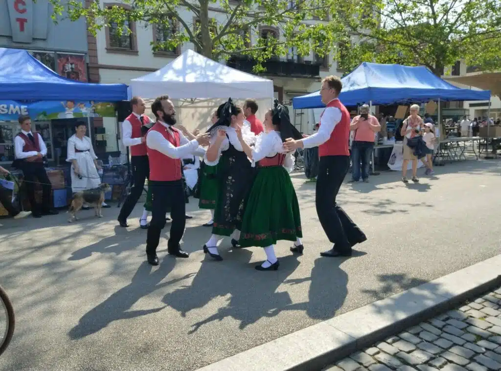 Et nous pouvons confirmer qu’au long de nos 16 kilomètres (à pied en ce qui nous concerne), marcher au milieu des vignes et des prairies était un pur bonheur, et passer dans ces villages au milieu des stands, orchestres, chorales, danseurs, … l’était tout autant. Nous en avons d’ailleurs profité pour nous restaurer dans l’un d’eux.