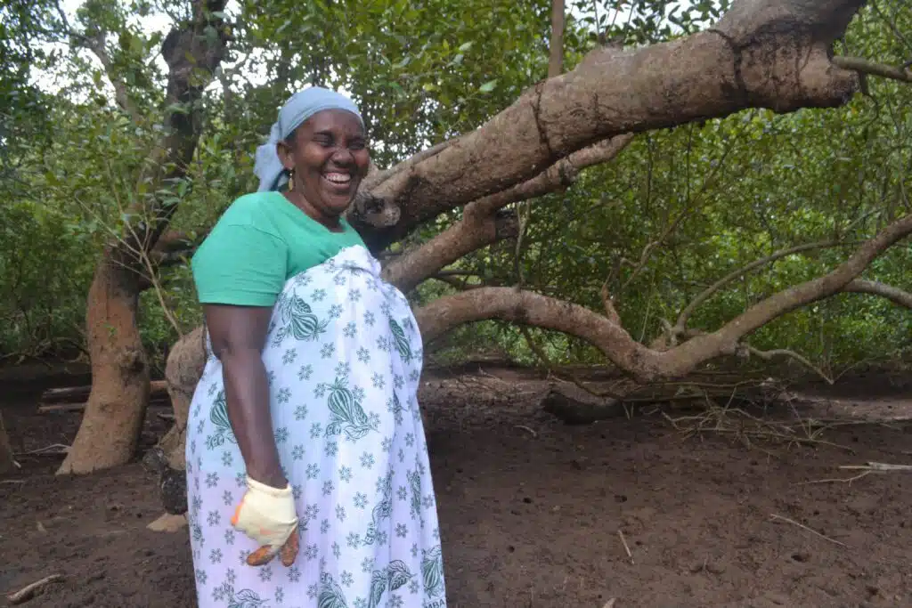Entre les racines, les feuilles mortes et l’océan Indien qui s’infiltre dans la forêt, retirer des machines à laver, des sacs plastiques, des câbles, des bouteilles de soda et des objets indéfinissables est un travail pénible. Munie de gants et d’un sac plastique, Moshtoiri a une quarantaine d’années. Cette allocataire du revenu de solidarité active (RSA), mère d’un enfant, vient de la commune de Bandrélé et se dit « contente d’être là », malgré la chaleur et la pénibilité.