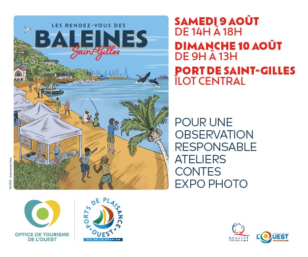 Les Ports de Plaisance Ouest, en partenariat avec l’Office de Tourisme Intercommunal de l’Ouest, organisent des journées d’animation sur l’observation des baleines les samedi 09 et dimanche 10 août 2025 au port de Saint-Gilles.