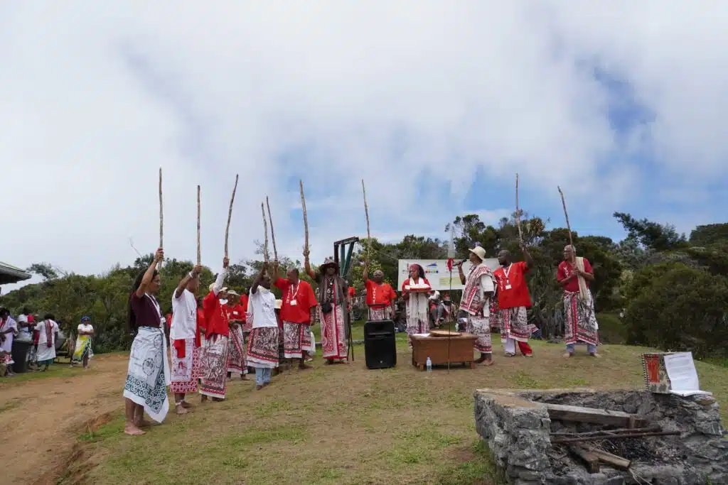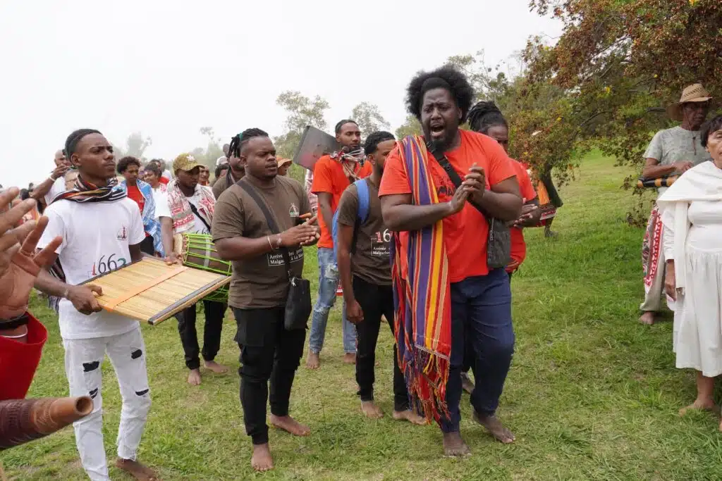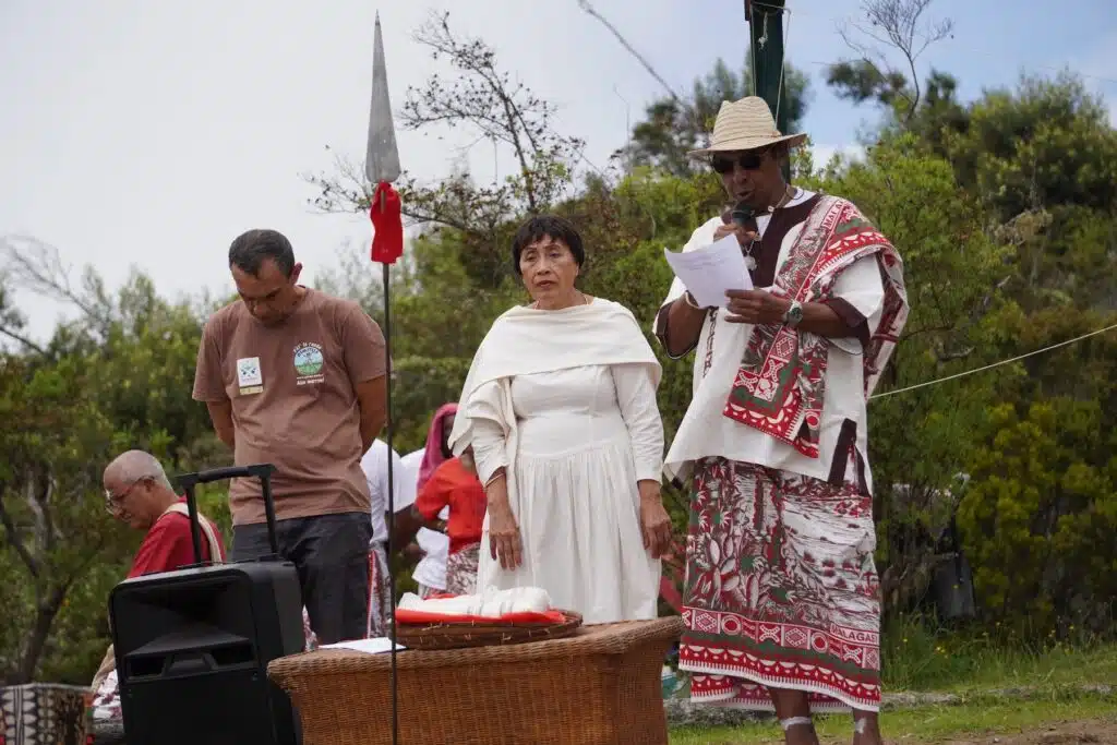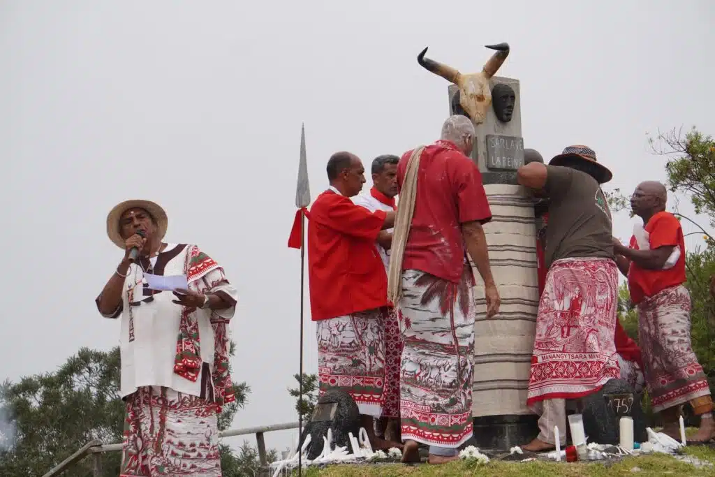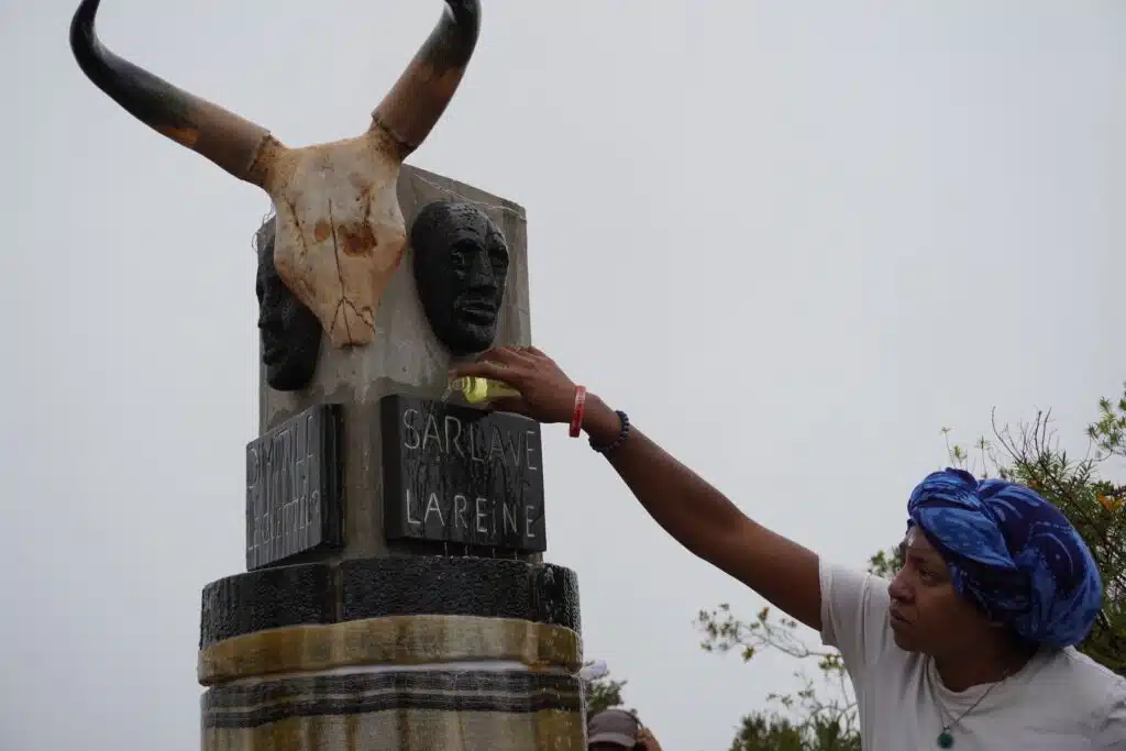 Là, au Dimitile, sous son parasol, vêtue d’une robe claire, elle est la maîtresse de cérémonie. Elle jalonne le culte de récits historiques sur les exploits des marons malgaches. « 80% malgache, précise-t-elle, il y avait aussi des marons d’Afrique et d’Asie. » Ces grands résistants aux oppresseurs esclavagistes n’ont pas attendu 1848 et Sarda Garriga pour vivre en femmes et hommes libres.