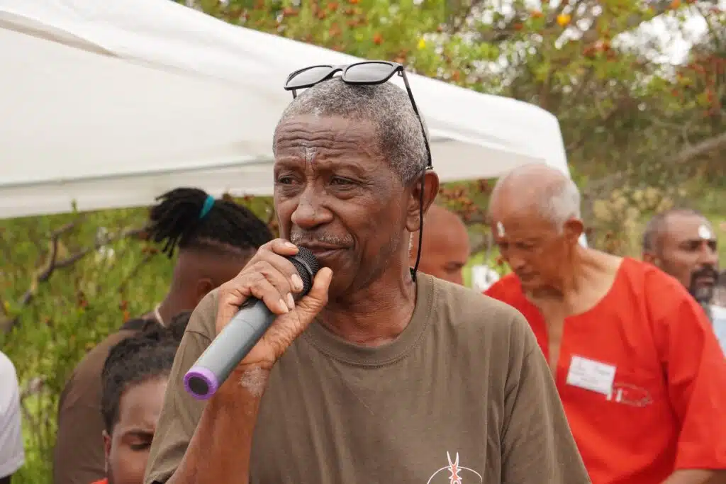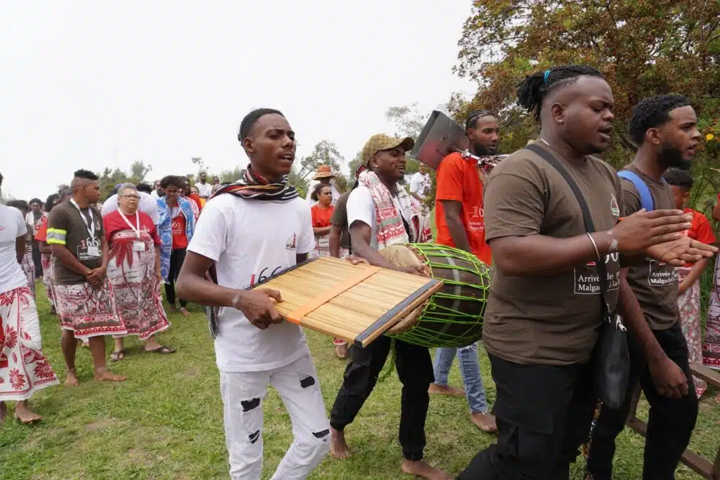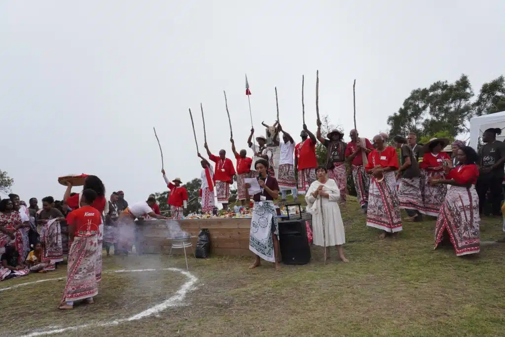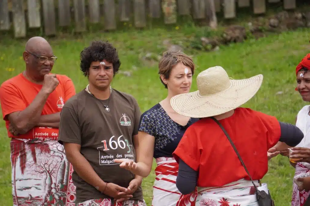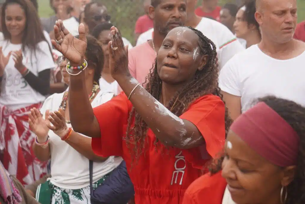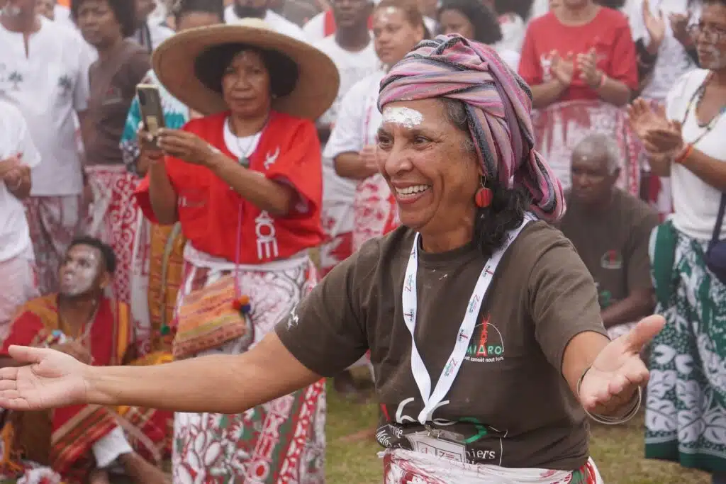 Là, au Dimitile, sous son parasol, vêtue d’une robe claire, elle est la maîtresse de cérémonie. Elle jalonne le culte de récits historiques sur les exploits des marons malgaches. « 80% malgache, précise-t-elle, il y avait aussi des marons d’Afrique et d’Asie. » Ces grands résistants aux oppresseurs esclavagistes n’ont pas attendu 1848 et Sarda Garriga pour vivre en femmes et hommes libres.