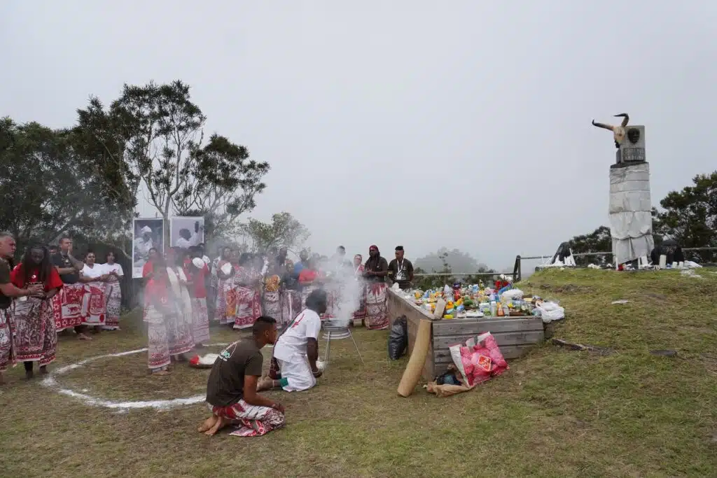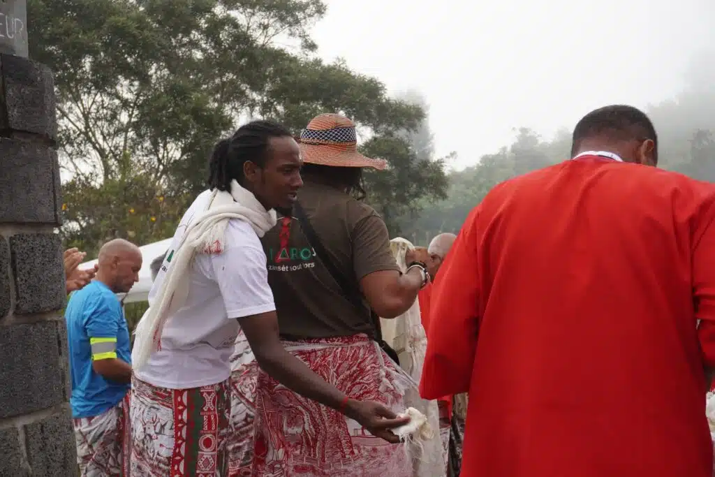 C’est un premier signe que ce moment est unique et exige, pour la plupart des participants une profonde implication. « Vingt-et-un jours de carême », confie Nadia qui en est à sa deuxième participation. Les quelque 400 personnes qui sont montées au camp maron ce dimanche 17 décembre n’ont pas seulement marché sur les traces du roi Laverdure, de la reine Sarlave et du guetteur Dimitile. Ils sont venus communier avec eux, avec leurs mémoires, avec leurs esprits. Ils s’en sont remis à l’entité divine désignée sous le nom de Zanahary.