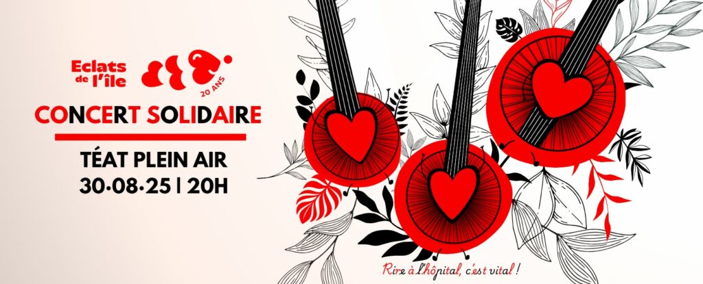 Éclats de l’île est la seule association dans ce registre à La Réunion : 11 clowns qui passent dans les chambres d’hôpitaux 5 fois par semaine pour essayer de donner le sourire aux enfants. Une action solidaire qui existe depuis 20 ans à La Réunion. Pour continuer à intervenir auprès des enfants, l’association organise pour ses 20 ans un concert solidaire ce samedi 30 août au théâtre plein air pour lequel les bénéfices seront reversés à l’association. Présentée par Émilie Minatchy et Brice Liie, la soirée réunira sur scène des artistes incontournables de la scène réunionnaise accompagnés par les Soulpaks : Bernard Joron (Ousanousava) · Tine Poppy · Black-T · Fabrice Legros · Carlo de Sacco (Grèn Sémé) · Jad’ · Nicole Dambreville · Aurus · Marie Lanfroy (Saodaj) · Gwendoline Absalon · Papanga Drums.