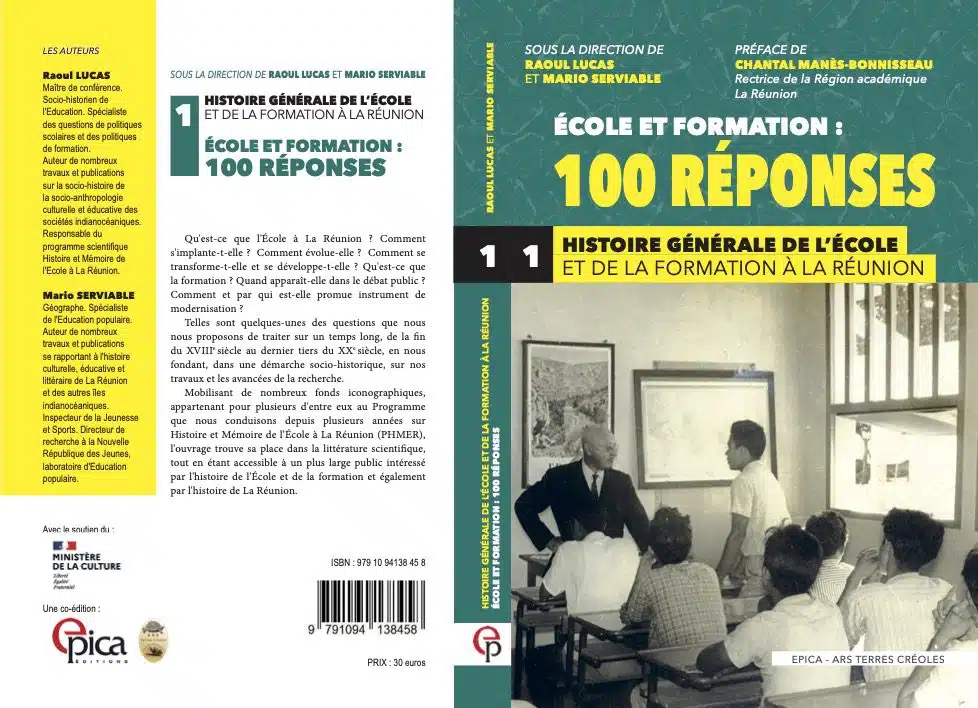 Cet ouvrage s’inscrit dans le cadre d’ un projet éditorial consacré à « l’ Histoire générale de l’ Ecole et de la Formation à La Réunion« . Ce projet, qui s’inscrit encore sur sept ans , comptera 10 volumes. Ayant fait le choix de ne pas suivre un ordre de parution chronologique notre projet a démarré avec le Volume 5 « Les Tentatives de réforme de l’ Ecole coloniale ». « Ecole et formation : 100 réponses » est donc la seconde parution de notre programme et c’est également le volume 1. L’ambition de notre projet éditorial est d’offrir une diffusion large à des programmes de recherche que nous conduisons depuis plusieurs années sur l’ Ecole et la Formation à La Réunion et qui nous ont permis de rassembler un vaste ensemble de matériaux documentaires de tous ordres et d’objet pouvant remonter très loin dans le temps.