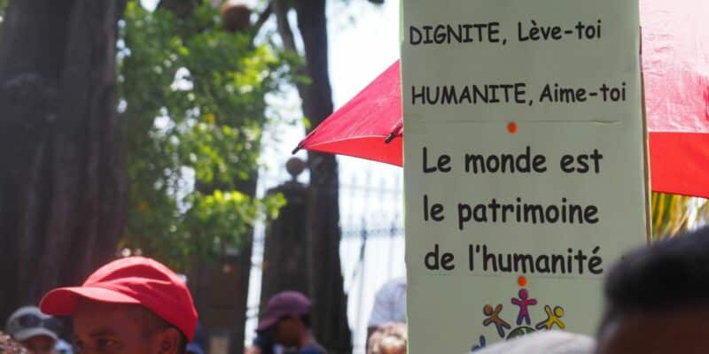 Manifestation contre l'instauration du pass vaccinal devant la préfecture de saint-denis de la Réunion le samedi 8 janvier 2022.