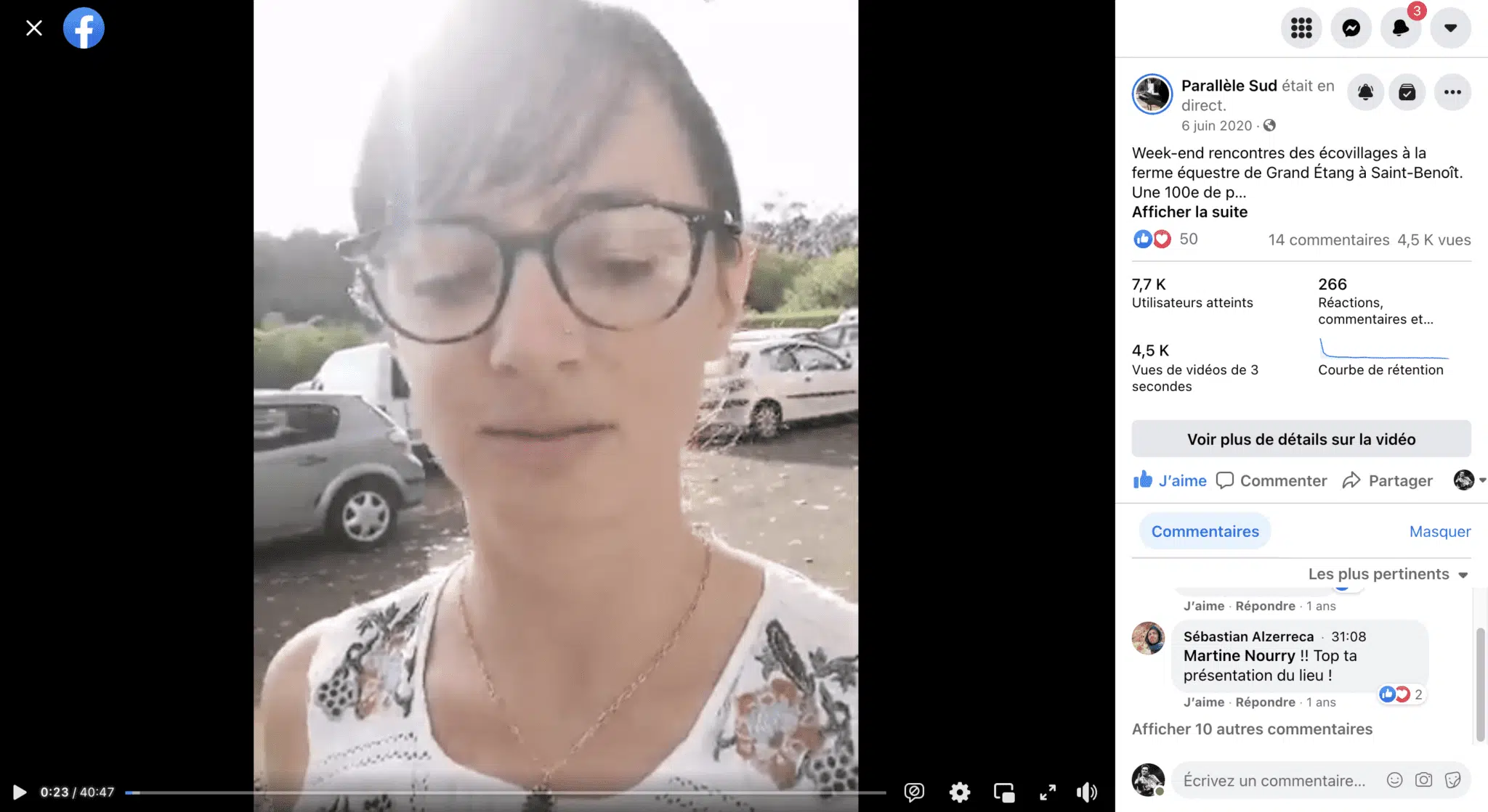 Lors des rencontres des écovillages à la ferme équestre de Grand Étang à Saint-Benoît, l’an dernier, Jéromine avait fait le tour des participants lors d’un direct Facebook. Une centaine de personnes rassemblées pour échanger et partager les connaissances pour apprendre à vivre autrement dans une plus grande autonomie. Avec Alanoula ecovillage, QG Zazalés Zilé Zone, Association éco-ferme Vincendo…Organisé par le Collectif Écovillages La Réunion 974.