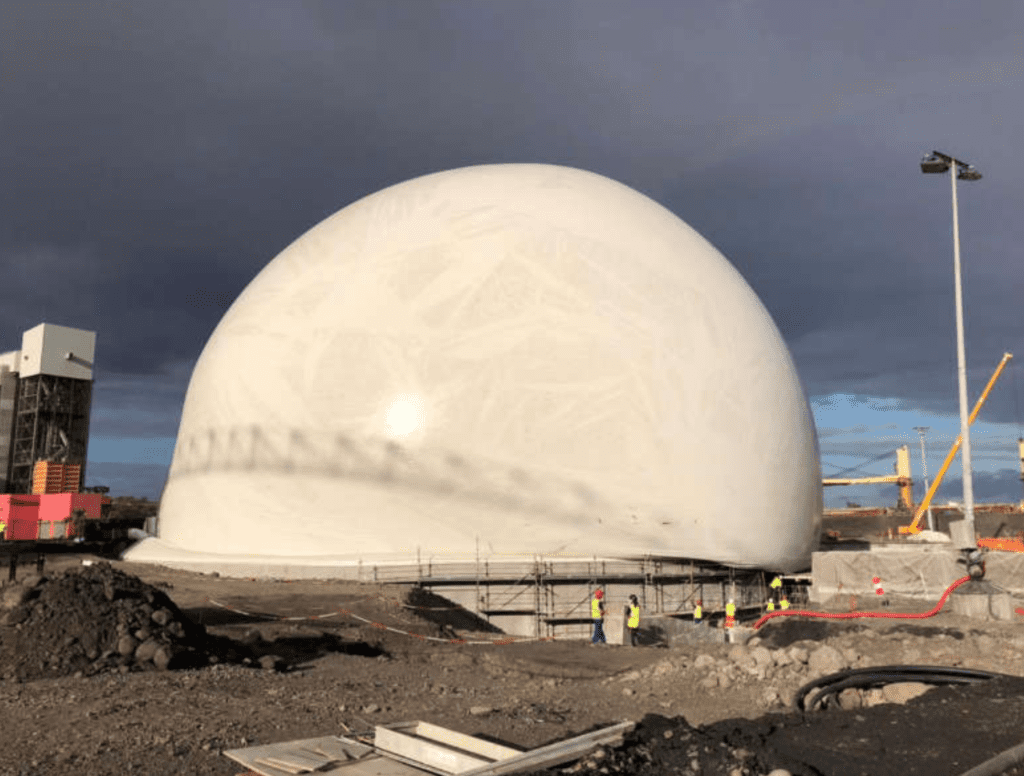 Le chantier a commencé depuis 18 mois. Celui de la centrale du Gol va suivre. Les investissements ont été considérables (voir le document joint). L’aspect le plus spectaculaire de la conversion réside dans la construction de dômes où sera stocké le bois. Le plus grands dômes (45 000 m3) se situent au Port et doivent pouvoir assurer une autonomie de deux mois. Des dômes plus petits (9 000 m3) alimentent les chaudières. Leur autonomie de stockage est de deux semaines.