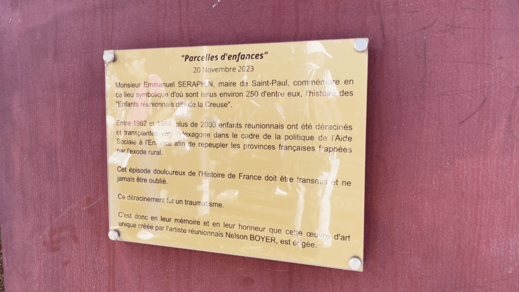 Stèle commémorative « Parcelles d’enfance » à Saint-Paul