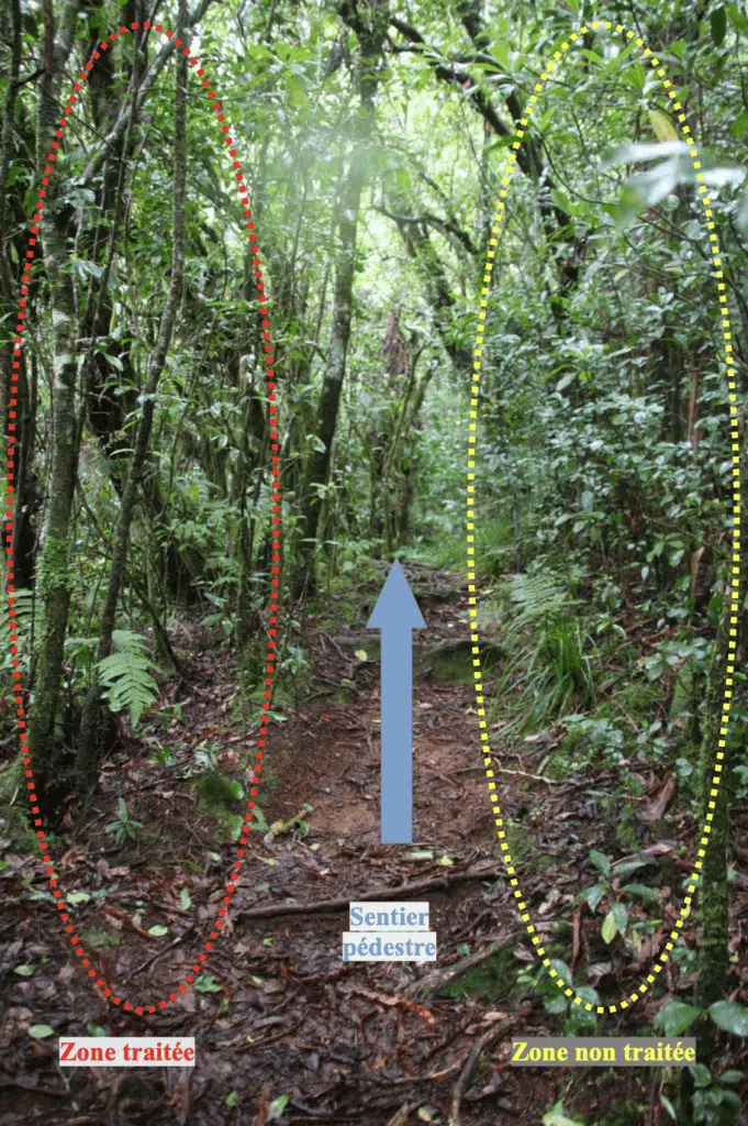 Ils s’attaquent principalement au goyavier, au raisin marron, au jasmin pourpre et au bégonia diadème. Et pour gagner en efficacité ils prennent le temps d’observer toutes les dynamiques de la forêt, l’influence de la faune, l’interaction entre les espèces, etc. Ils mènent plus un travail de chirurgiens que de défricheurs pour repérer les bonnes et les mauvaises plantules. Ils savent aussi qu’un minuscule millimètre carré de bégonias suffit à régénérer cette peste.