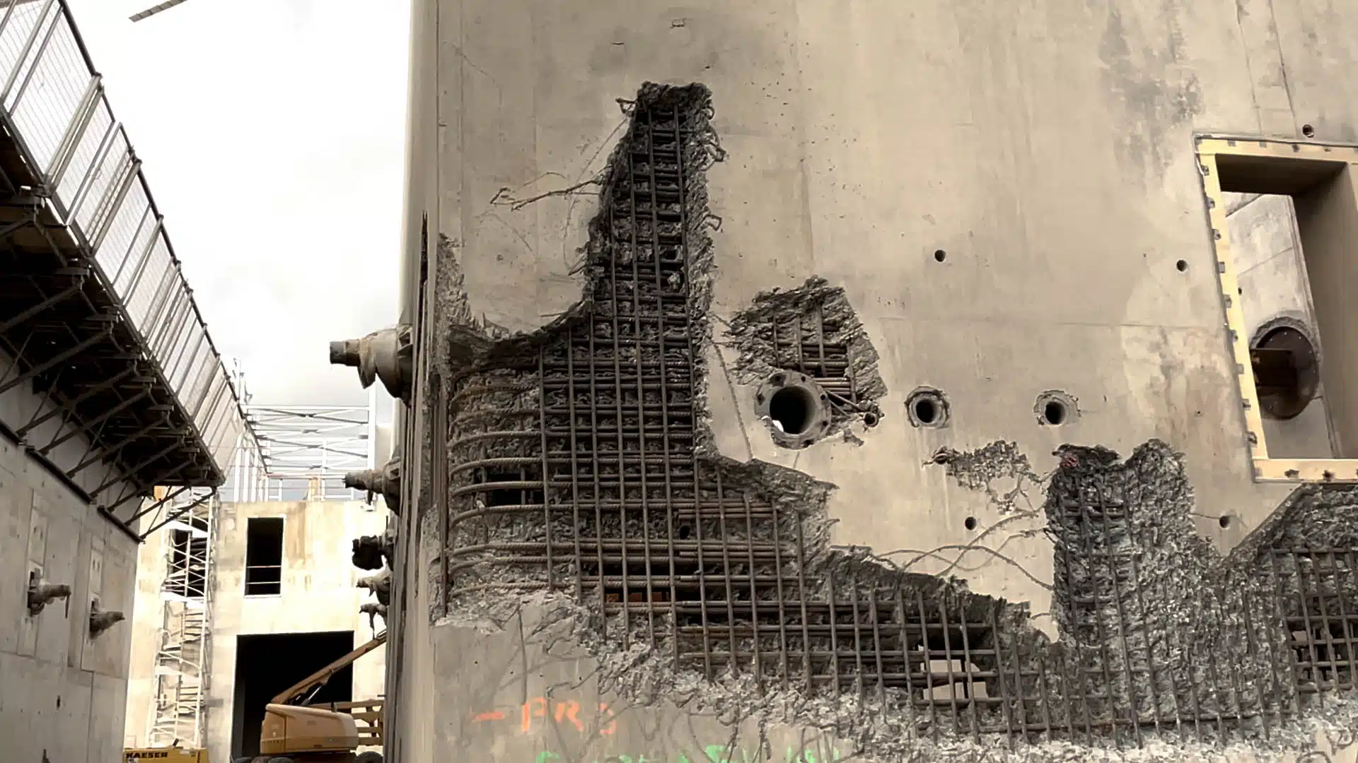 Hélas, le béton utilisé s’est avéré plus visqueux que prévu et ne s’est pas écoulé vers le bas de manière fluide. D’où l’apparition de faiblesses qu’il a fallu ouvrir par « hydro-démolition ». C’est ainsi qu’apparaissent aujourd’hui des trous béants laissant voir le ferraillage. « L’entreprise avait le choix entre tout démolir et tout reconstruire ou injecter un mortier spécial dans les trous. C’est la deuxième option qui a été choisie, relève Eddy Lebon, Nous avons beaucoup d’experts pour contrôler et valider l’étanchéité de la réparation donc ça va bien se passer. C’est à la charge unique de l’entreprise, ça n’entraînera pas de surcoût. Le deuxième méthaniseur, quant à lui, est nickel ».