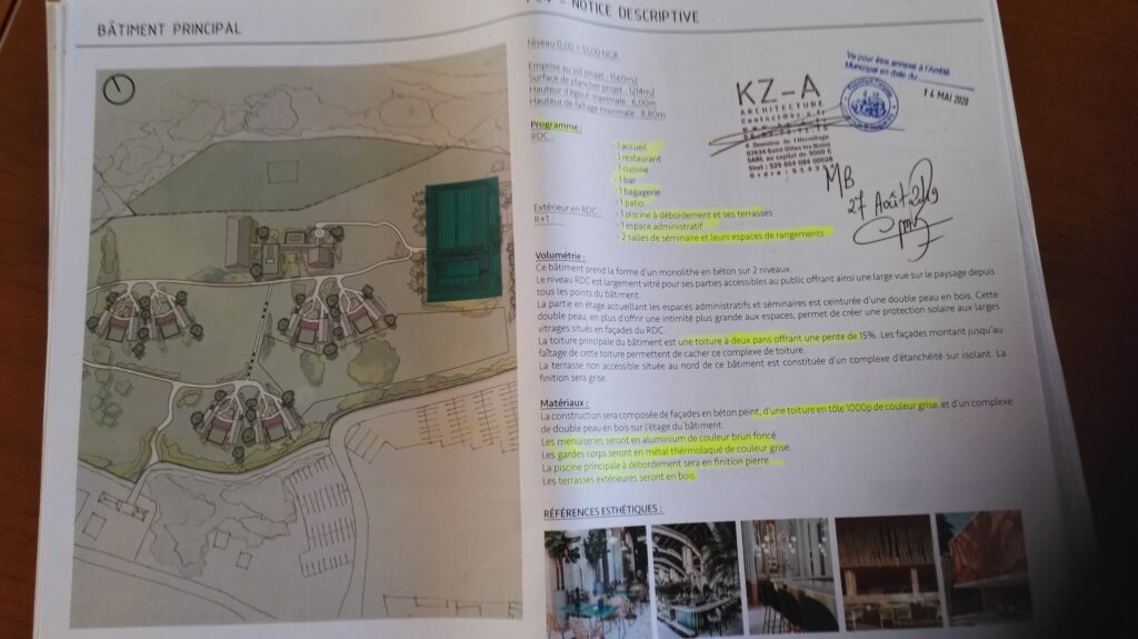 D’après Camille, les habitants sont choqués de ne pas avoir été conviés à une réunion d’information, et aussi du refus de leur laisser voir les plans de l’hôtel à venir. Car cet hôtel de trente chambres, peut-être cinquante, avec une salle de conférences de 130 places, ne disposera que de vingt-huit places de parking. Trois pour le personnel précise le dossier. Comment peut-on ne pas penser qu’un autre chantier pour le stationnement verra le jour en même temps que l’hôtel ? « Au delà de cinquante places, une étude environnementale est obligatoire », remarque Camille. Qui détecte sur le plan l’emplacement d’un éventuel futur parking. « Vingt-huit places de parking pour accueillir 379 personnes, qui peut croire à ça ? », interroge-t-elle. Et dénonce le « saucissonnage du projet (route, parking, hôtel) », pour éviter les contraintes relatives aux études d’impact.