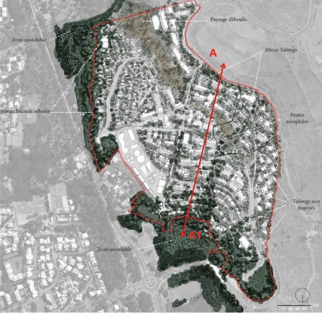 Le terrain concerné est encore une savane et se situe juste au dessus de l’Ermitage du côté montagne de l’ancienne route nationale, la RN1A, face au quartier de l’Oeil de Boeuf. Ce projet disruptif de tous les discours de protection de l’environnement a pris tout le temps nécessaire pour avancer. En 2011, le Schéma d’aménagement régional (SAR) a classé le terrain en zone d’urbanisation prioritaire ce que le Plan local d’urbanisme (PLU) de Saint-Paul a confirmé l’année suivante.
