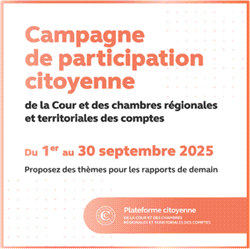 La Cour des comptes et les chambres régionales et territoriales des comptes ont lancé le 1er septembre la 4ᵉ édition de leur plateforme de participation citoyenne. Jusqu’au 30 septembre 2025, chacun peut proposer un thème de contrôle ou d’enquête portant sur la gestion publique. Depuis 2022, plus de 50 propositions citoyennes ont été intégrées au programme de travail.