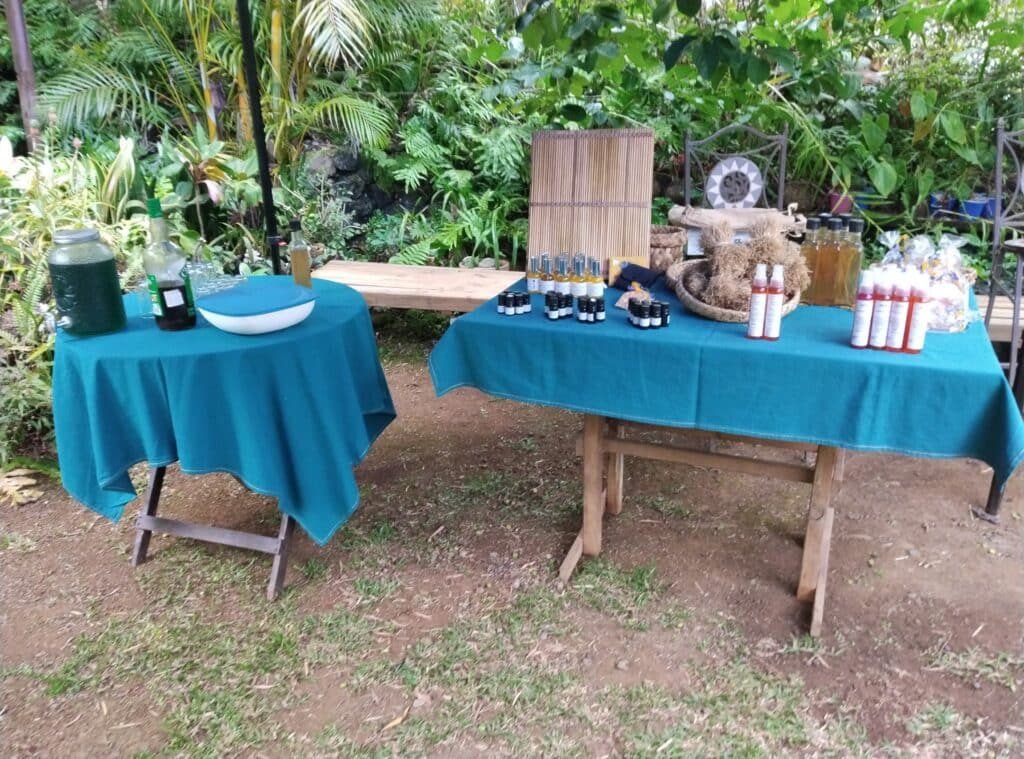 Didier Hoareau est un passionné, ce patrimoine agricole local, il le fait vivre, le défend, le fait découvrir dans toute sa diversité. Didier Hoareau ne fait pas vraiment commerce de son activité, tout au plus de la vente locale en particulier à l’issue des visites : huile essentielle, hydrolat notamment.