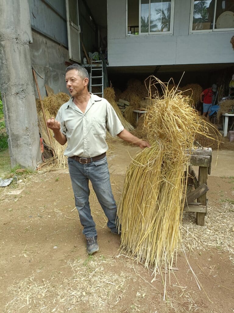 Bien entendu, on connaît l’huile essentielle, l’hydrolat et les fagots utilisés dans nos armoires (et celles de nombreux touristes !). Didier Hoareau fabrique des toitures et des paillottes en paille de vétiver. Il explique que le vétiver a de nombreuses vertus, notamment l’huile essentielle : « L’huile de vétiver est d’abord un fixateur de parfum, c’est aussi un excellent anti-inflammatoire qu’on peut utiliser dans des huiles de massages. C’est aussi un cicatrisant, on l’utilise par exemple pour traiter certaines maladies de peau comme les psoriasis. Et puis elle a des vertus apaisantes, relaxantes. »