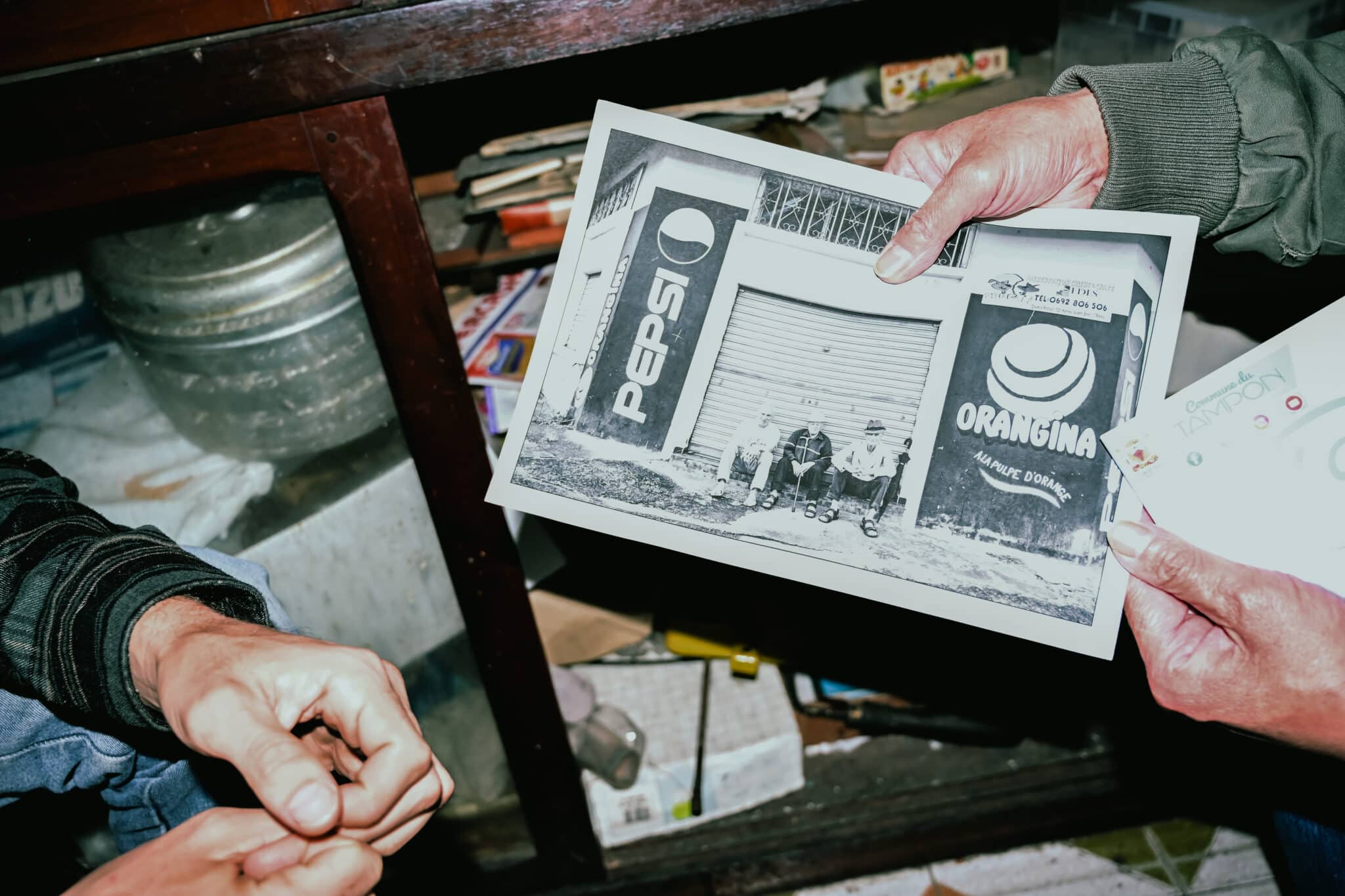 À quelques pas, la boutique Chez Henry tient encore debout. Ouverte en 1955 par le père d’Harry, elle a traversé des décennies de transformations. « Papa dormait sur une caisse dans la boutik », raconte Harry. Sa mère, réunionnaise, tenait le comptoir dès l’aube. « Les gens passaient à 5 ou 6 heures du matin pour aller au champ. Ils prenaient un ti coup de rhum. »