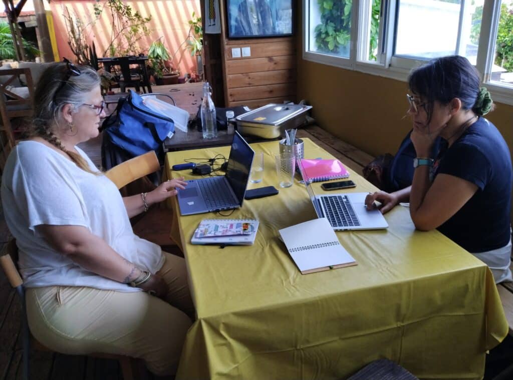 Les bénévoles du festival Komidi sont sur le pont depuis des mois. Après avoir présenté ceux chargés des décors, Parallèle Sud a rencontré Muriel et Corinne qui sont chargées de l’hébergement des troupes et techniciens. Téléphones et ordinateurs sont souvent en surchauffe !