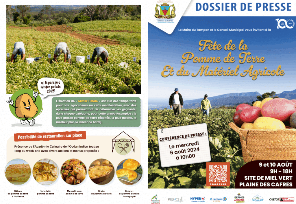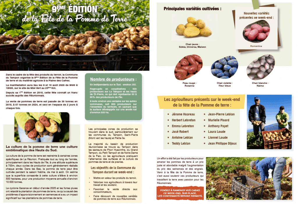 Rendez-vous ce week-end pour la 9ème édition de la fête de la Pomme de Terre et du matériel agricole à la Plaine des Cafres ! Retrouvez de nombreuses variétés cultivées par nos 12 agriculteurs présents sur le site de Miel Vert.