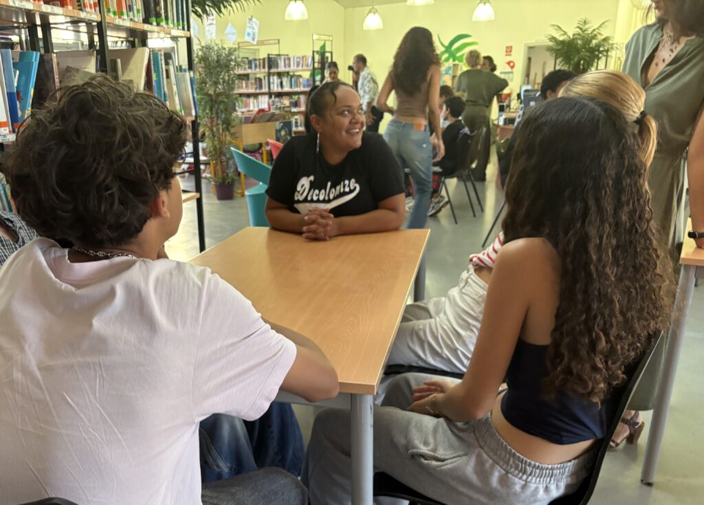 Dès 8 heures du matin le mardi 14 avril, les premières animations débutent au sein du CDI du collège Aimé Césaire. Les élèves participent à des ateliers en petits groupes avec les artistes et des performances musicales ont également lieu pendant la récréation, ce qui rend l’expérience plus proche des élèves. Pour faciliter l’échange avec les artistes venus de Porto Rico et de la Nouvelle-Orléans, des traductions en anglais et en espagnol sont proposées, notamment avec la présence de la prof d’anglais et les explications de Florient Jousse, metteur en scène du spectacle présenté.