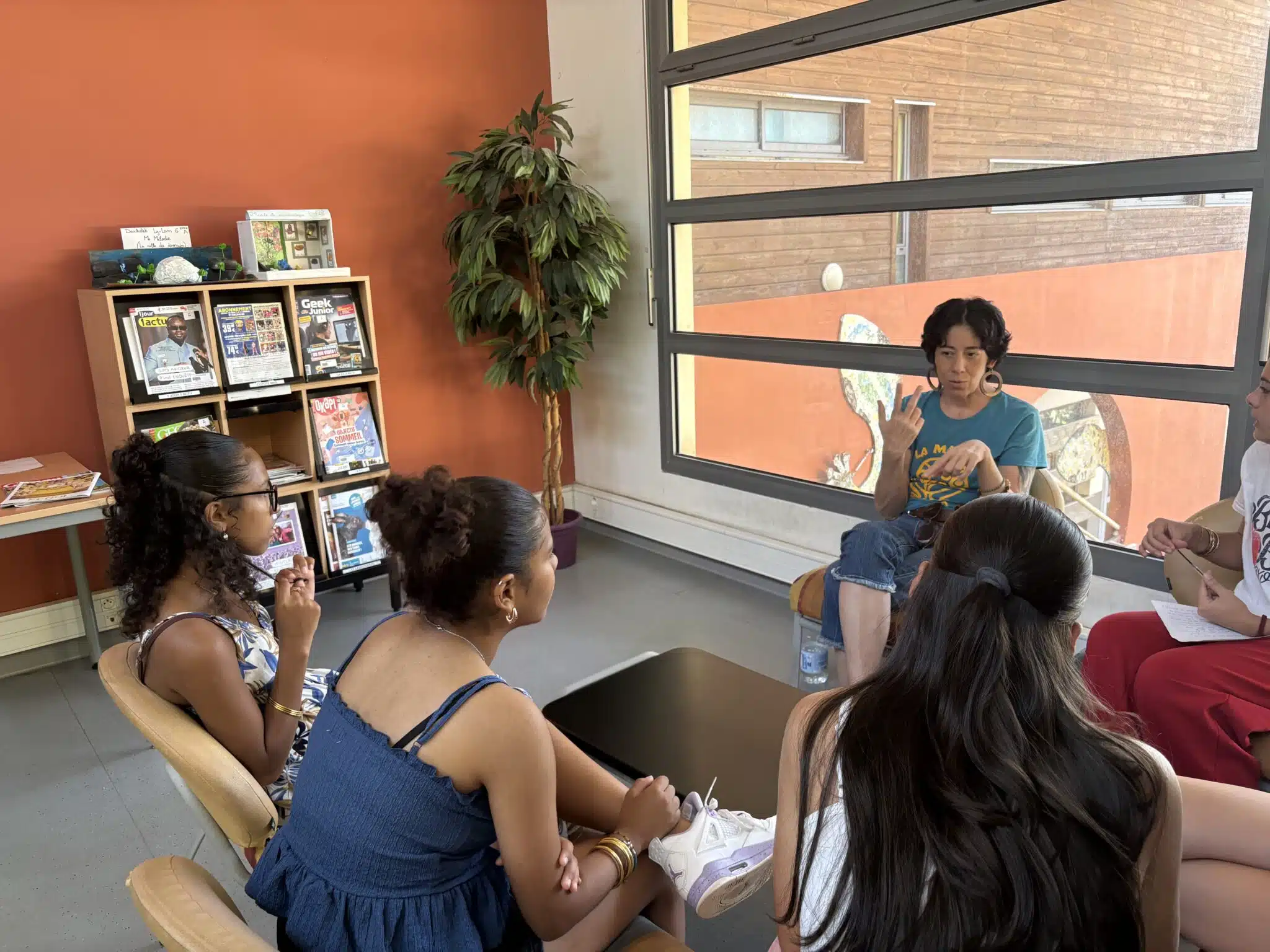 Lors des ateliers, les artistes ont été répartis en petits groupes avec les élèves, chacun abordant des thématiques différentes en lien avec leurs parcours et le spectacle Flamboyants.