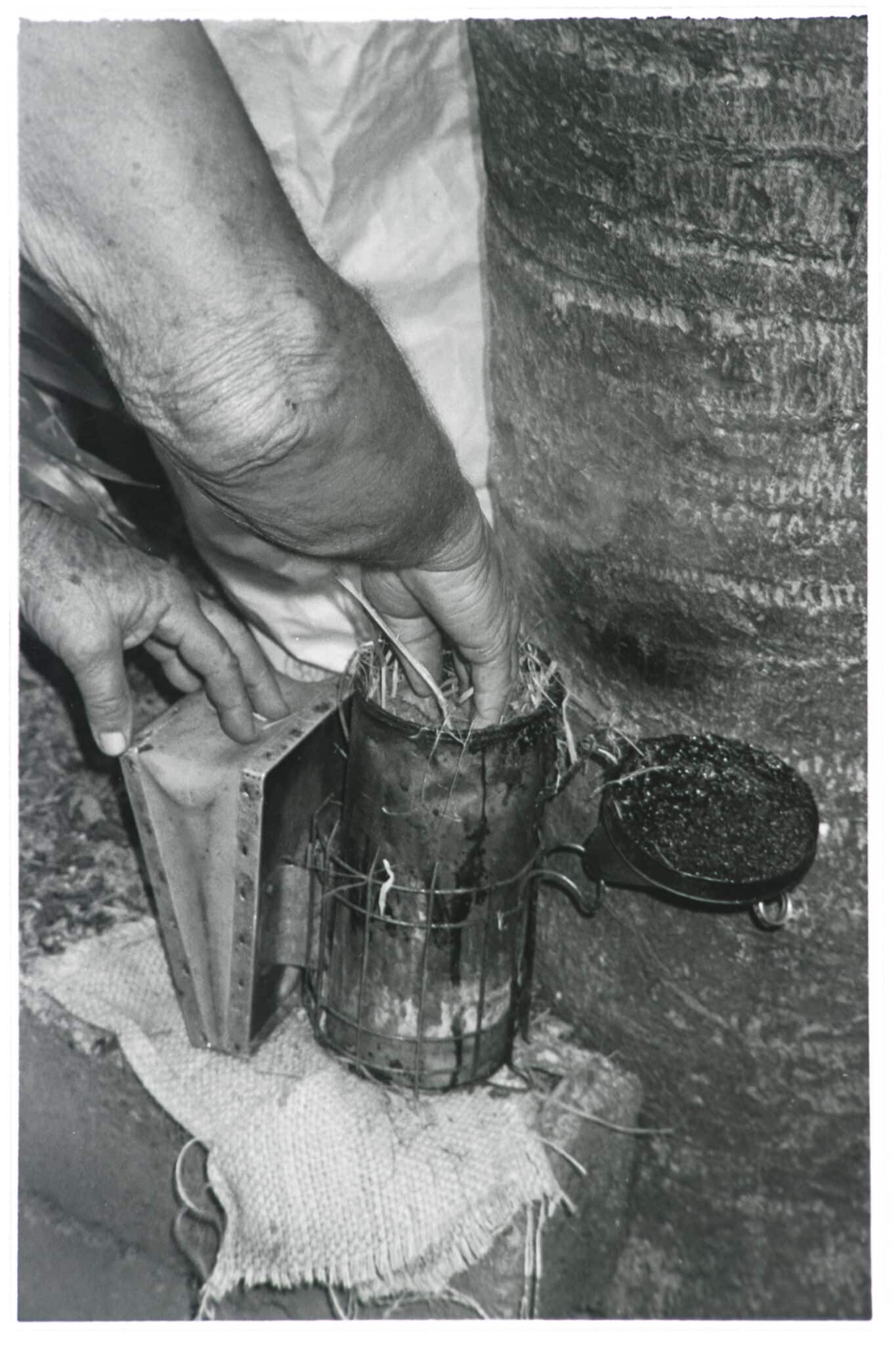 Montvert les Hauts, 14/01/2025. Georget Ognard, apiculteur, vit dans la meme maison dans laquelle il a grandi a Montvert les Hauts. Son pere l’a construite en 1963. Photographie par Olivier Ceccaldi/ Agence 43mm.Montvert les Hauts, 14/01/2025. Georget Ognard, apiculteur, debute sa journee dans son jardin ou se trouve ses ruches. Photographie par Olivier Ceccaldi/ Agence 43mm.Montvert les Hauts, 14/01/2025. Georget me montre les alvéoles fabriquées par ses abeilles. Photographie par Olivier Ceccaldi/ Agence 43mmMontvert les Hauts, 14/01/2025. Georget prépare son fumoir Dadant pour pouvoir aller travailler sur ses ruches. Photographie par Olivier Ceccaldi/ Agence 43mm