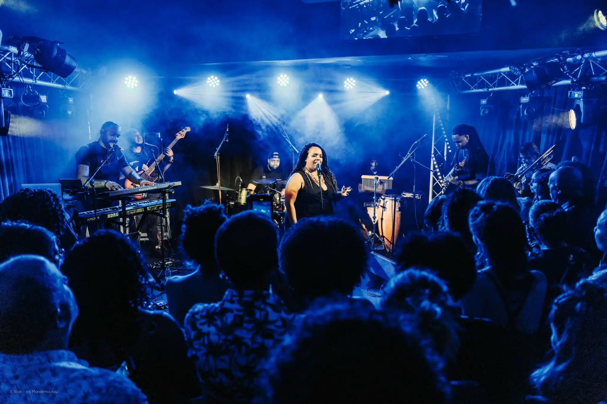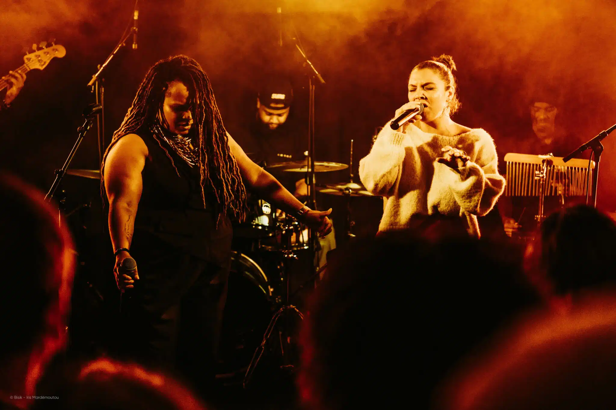 Le vendredi 30 mai au Bisik, le temps s’est ralenti pour laisser place à une parenthèse enchantée. Le genre de moment rare où la musique devient le langage de l’âme. En ce début d’hiver austral, deux femmes d’exception ont réchauffé la nuit de leur voix incandescente : Gwendoline Absalon et Flora Obé.