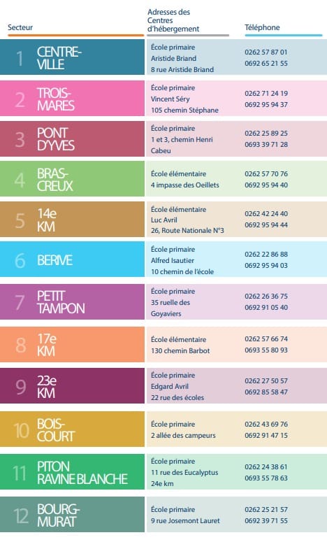 La commune du Tampon se mobilise activement pour assurer la sécurité de ses habitants. Dès la mise en place de l’alerte orange, les centres d’hébergement ouvrent leur porte. Ci-dessous la liste des 12 centres avec leurs coordonnées.