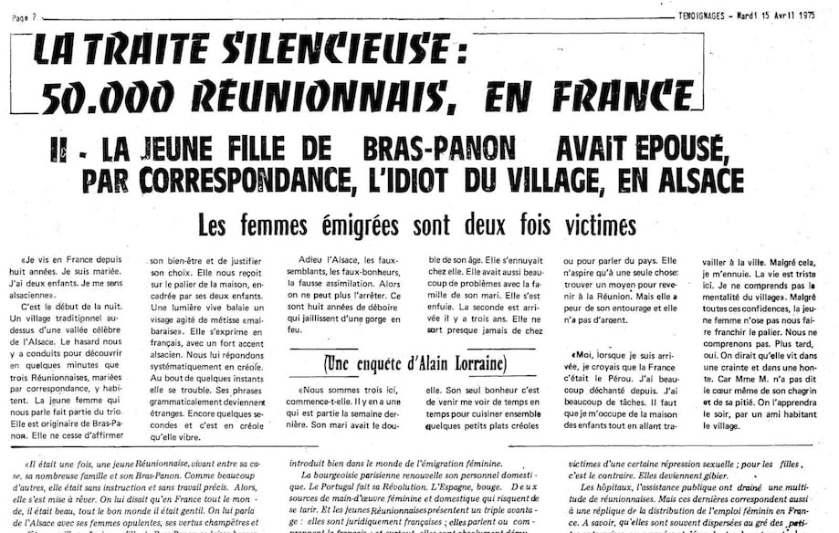 Les contenus postés aujourd’hui par les Réunionnais en Métropole sur les réseaux sociaux – qui soulignent, parfois sur le ton de l’humour, les difficultés de la vie en Hexagone – sont les lointains héritiers de ces campagnes de presse. Dans les deux cas, ils montrent les dommages psychologiques et émotionnels causés par le déracinement des Réunionnais partis vivre en Métropole.