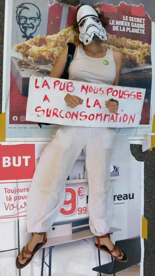 Ca m’était devenu insupportable de voir ces publicités partout, et surtout des publicités qui incitent à la consommation de produits de mauvaise qualité avec des impacts néfastes pour l’environnement. Notamment l’alcool, les fast-food, les voitures… Voir comment lutter contre la communication massive des multinationales qui sont celles qui s’affichent à 80% sur ces grands formats.