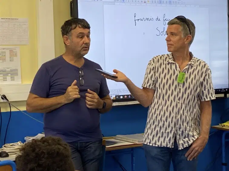 Dans des interventions de Parallèle Sud en établissements scolaires, les élèves du dispositif Ulis du collège Adam de Villiers de Saint-Pierre, ont réalisé un reportage sur l’invasion de leur forêt, « le karo piédbwa Olivier Salerno » par les fourmis. François Vandeschricke, professeur de SVT (Sciences de la vie et de la terre) explique comment les fourmis sont arrivées dans le jardin du collège et comment les faire partir.