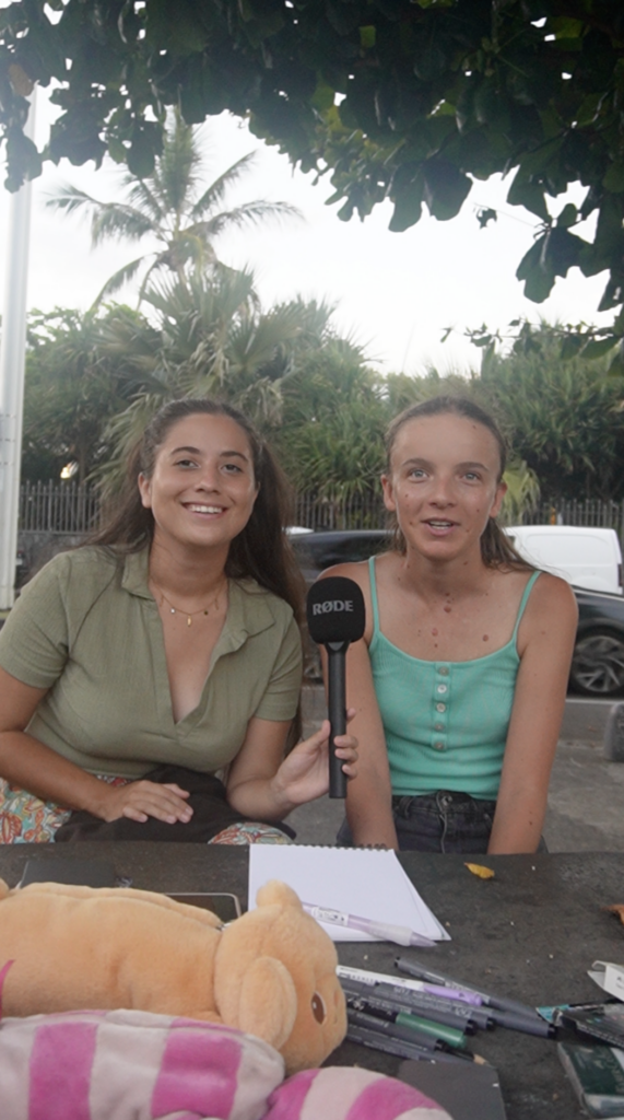 Lucie et Manon, sur la plage de la Ravine blanche, Saint-Pierre, dans le cadre de l’enquête sur le rapport des jeunes à la politique