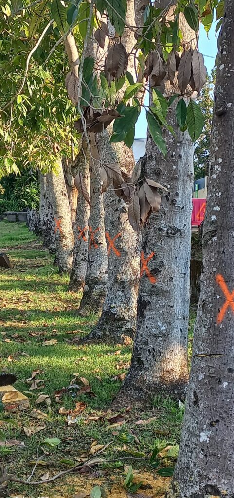 Le 27 août 2025, jour même de la clôture officielle de l’enquête publique sur la nouvelle voie urbaine du Tampon, j’ai constaté et photographié l’abattage de plusieurs arbres présents depuis des dizaines d’années au niveau de l’église du 14e km. Certains de ces arbres, très anciens, pouvaient avoir un âge proche du siècle.