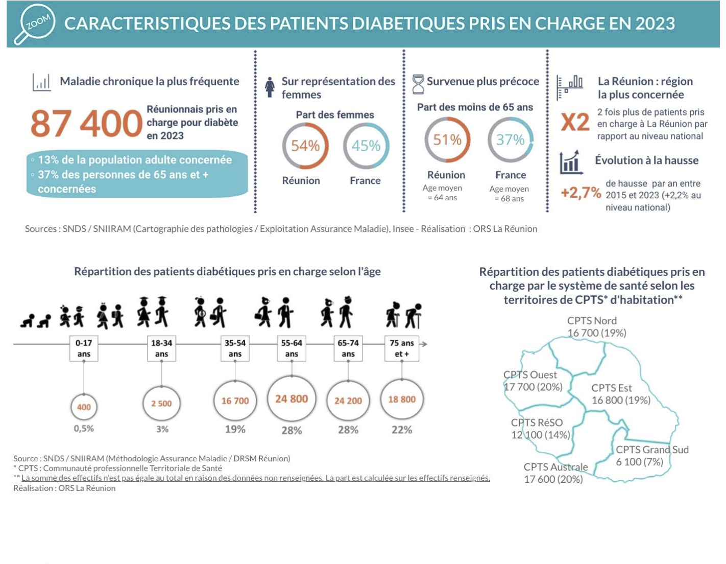 Infographie issue du rapport Le diabète et les personnes diabétiques à La Réunion de l’ORS – 2025