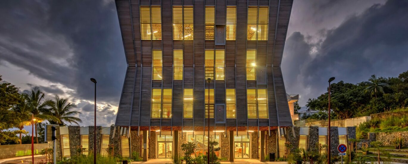 La médiathèque du Sud sauvage, c’est un peu la référence régionale en matière de médiathèque. Ce sont d’abord des symboles environnemental et architectural (une botte de vétiver) originaux. C’est aussi un concept éco-énergétique qui a montré son efficacité (pas de climatisation, la ventilation se fait naturellement). Elle est située en plein cœur de ville et est devenue au fil des ans le lieu culturel incontournable du Sud sauvage bien sûr, mais aussi du département.